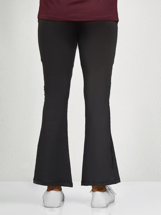 Women’s Black Poly Solid Flare Bottom