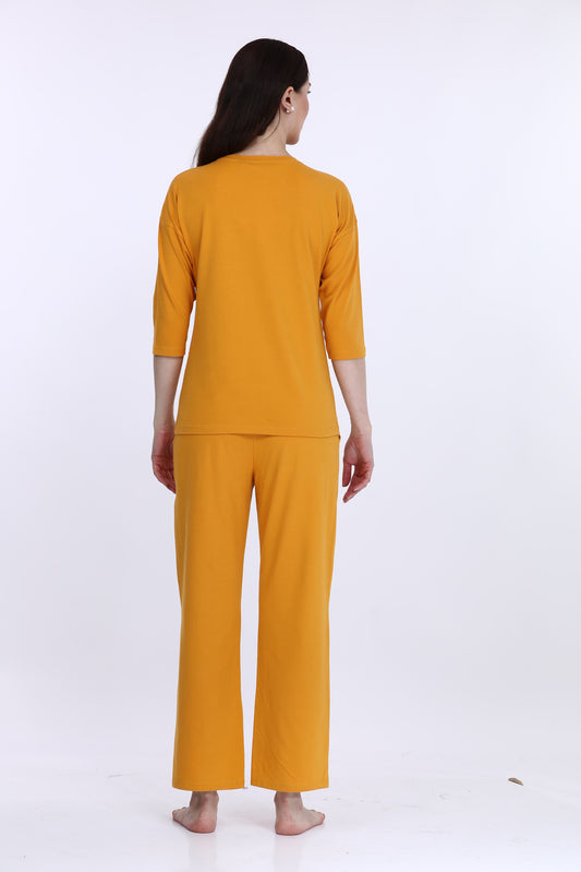 Yellow 3/4 Sleeve Cotton Co-Ord Set