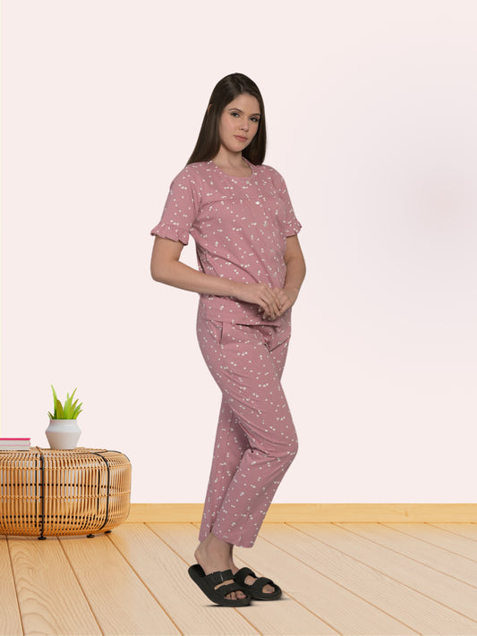 Beige Half Sleeve Tshirt & Pyjama Set