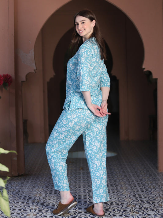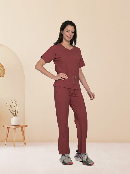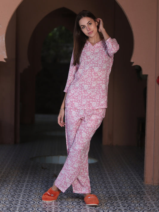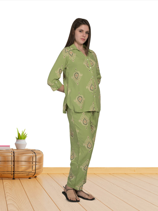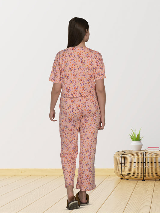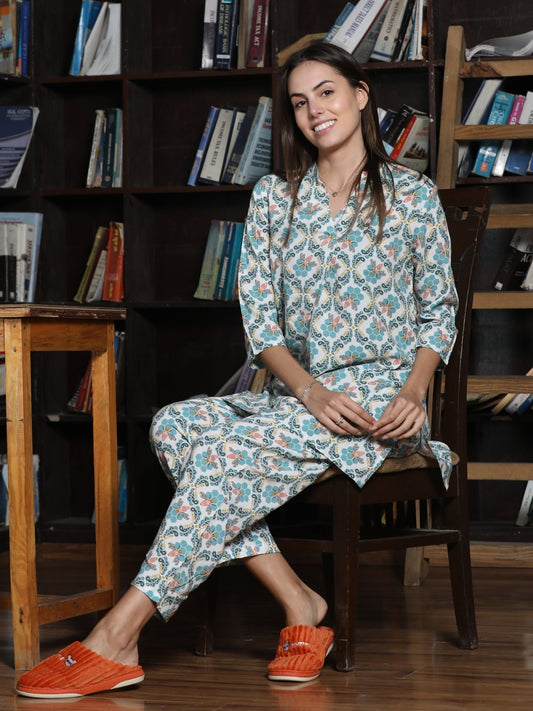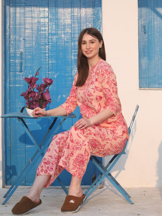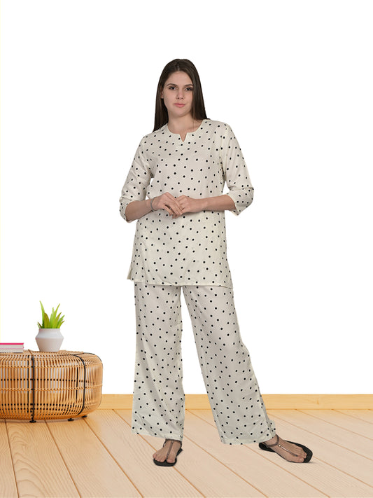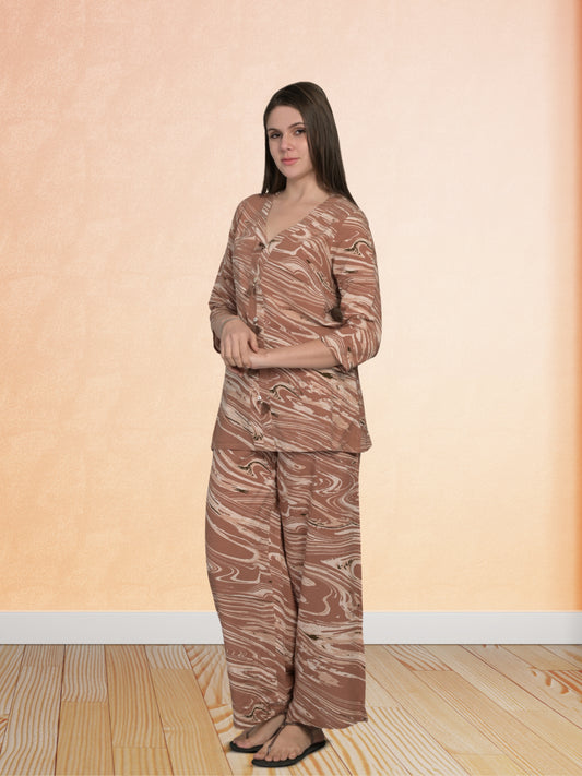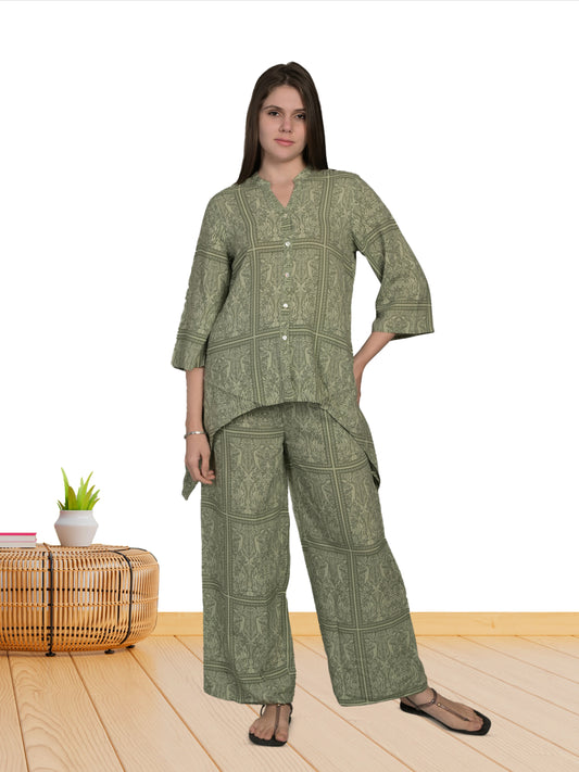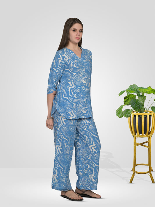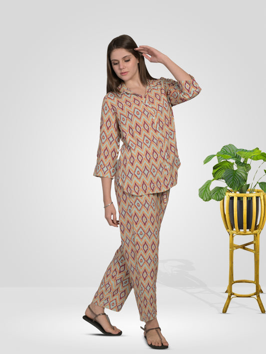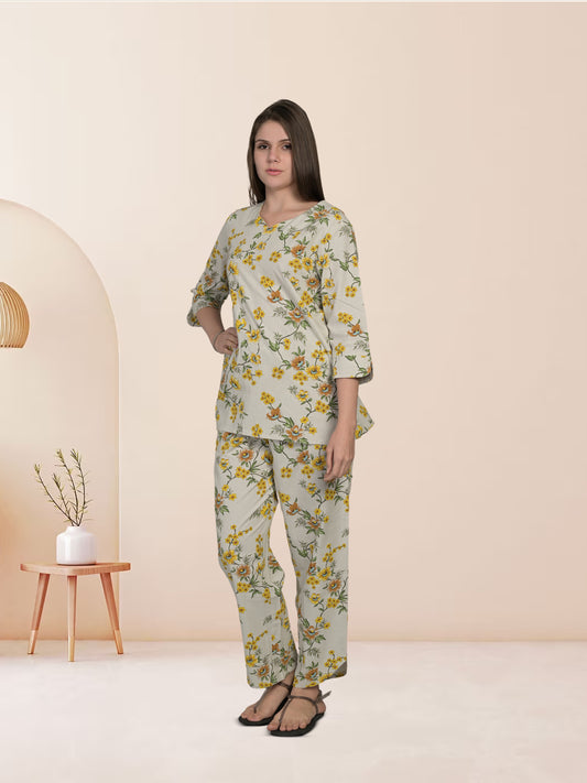 V Neck Grey 3/4Th Sleeve Printed Co-Ord Set