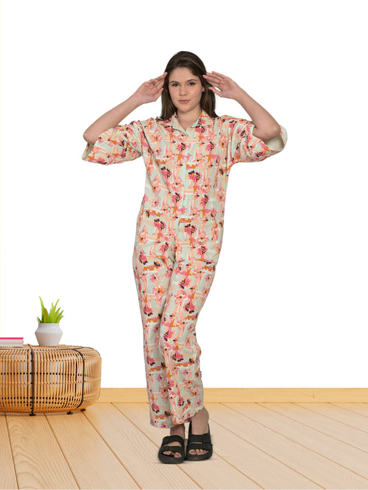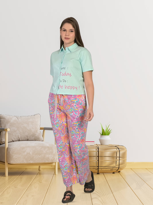 Pageant Navy Blue Printed Cotton Nightwear Set