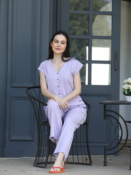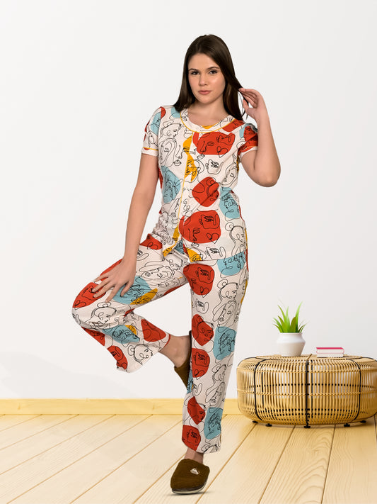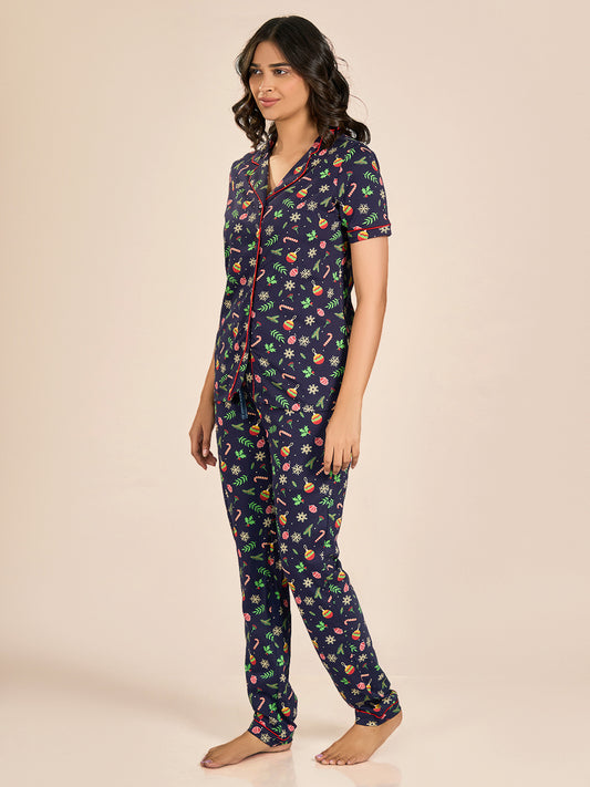 Pageant Navy Blue Printed Cotton Nightwear Set