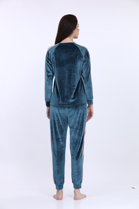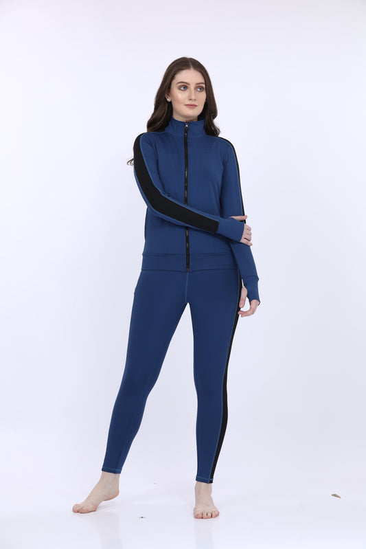 Navy Blue Poly Spandex Women’s Full Sleeve Tracksuit