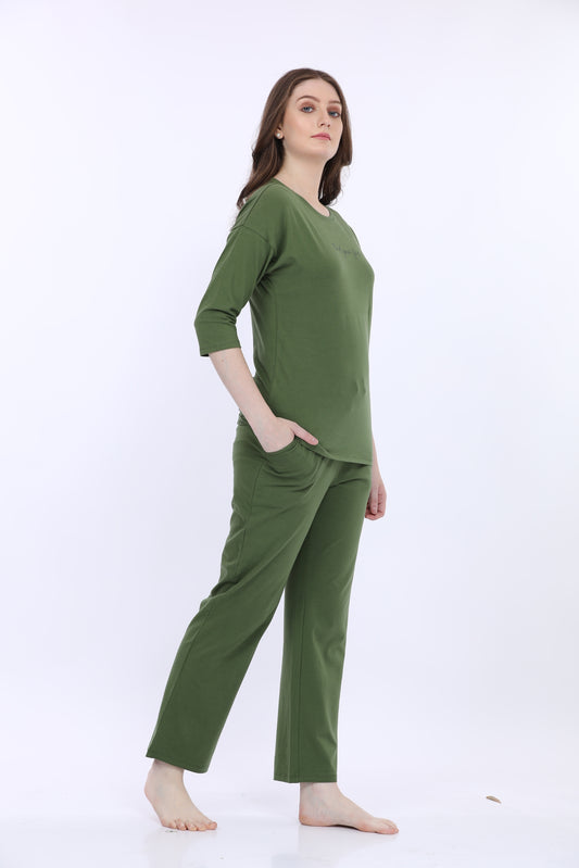 Green Cotton Co-Ord Set with 3/4 Sleeves