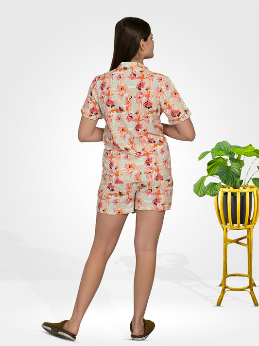 Multi-Color Beige Top & Shorts Set